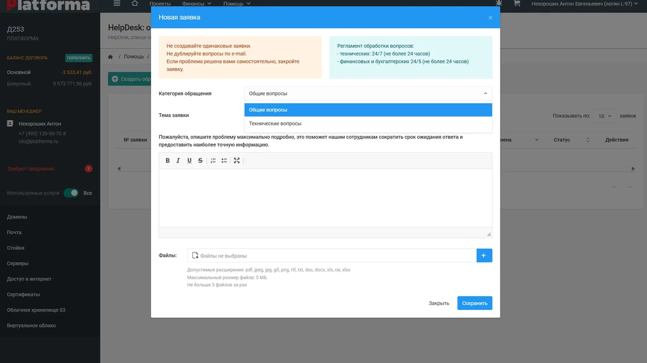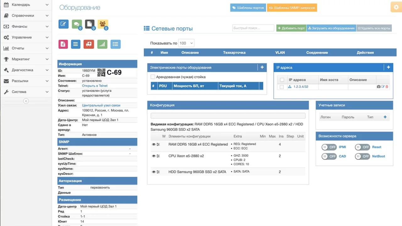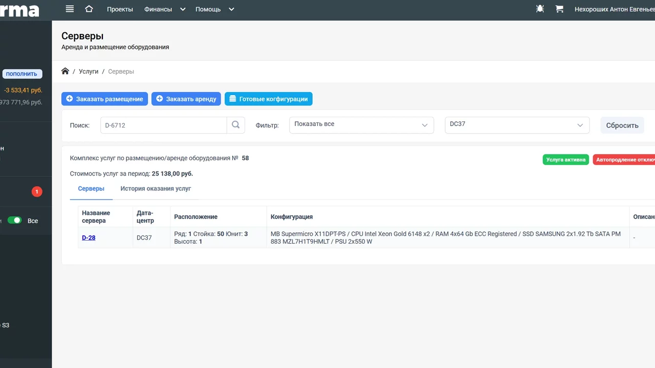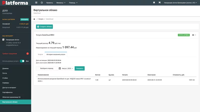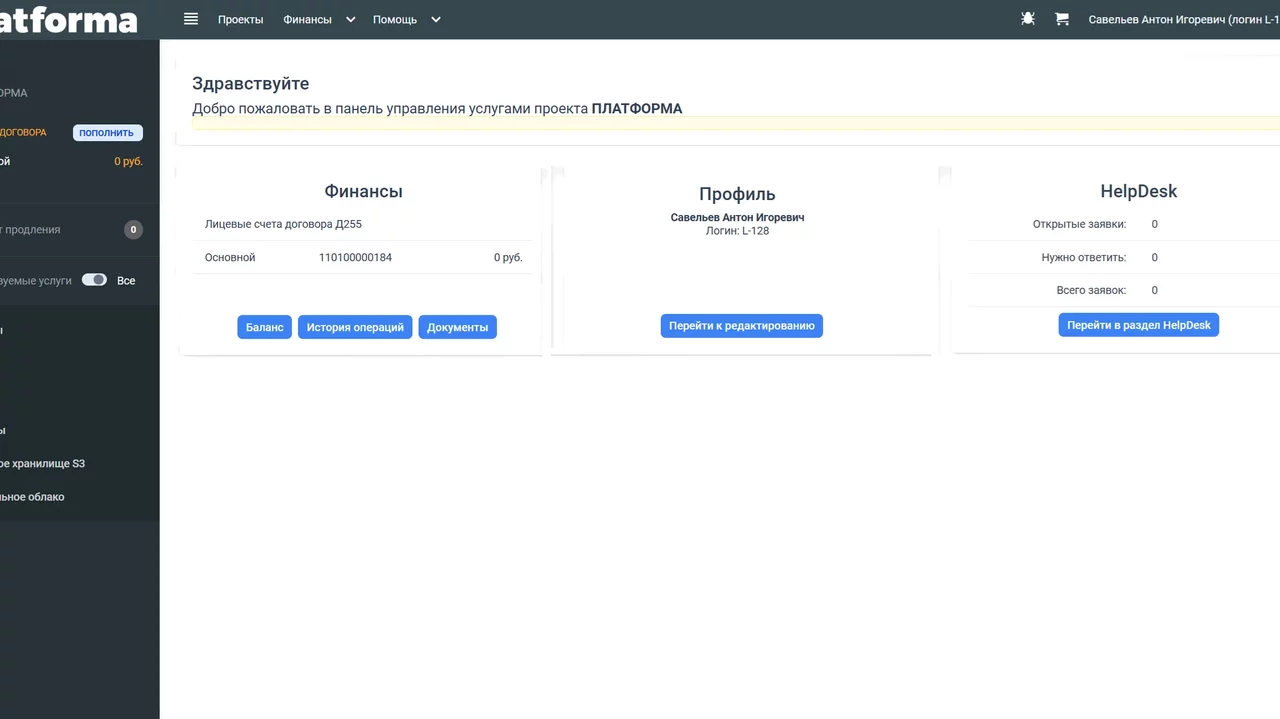 Готовая панель управления для клиентов для всех услуг ЦОД