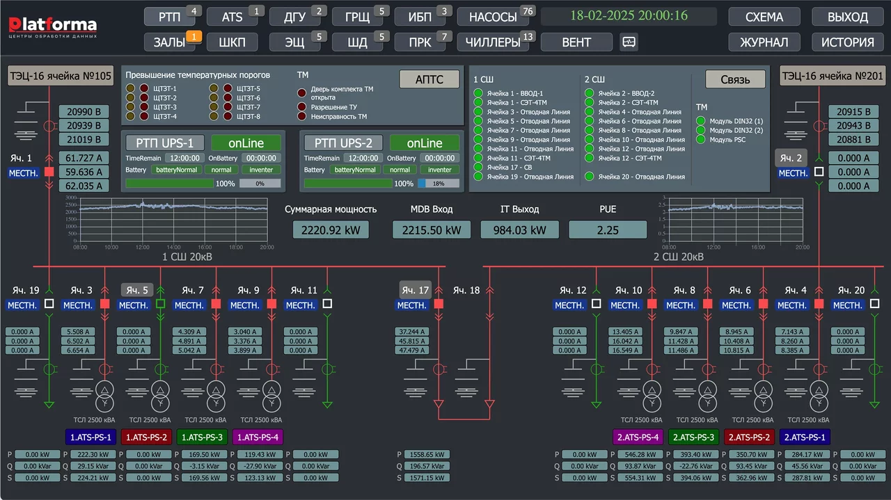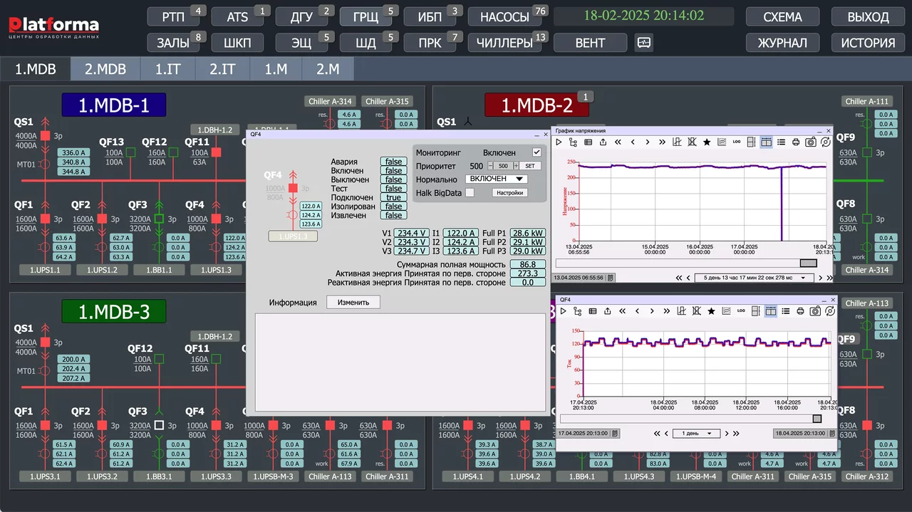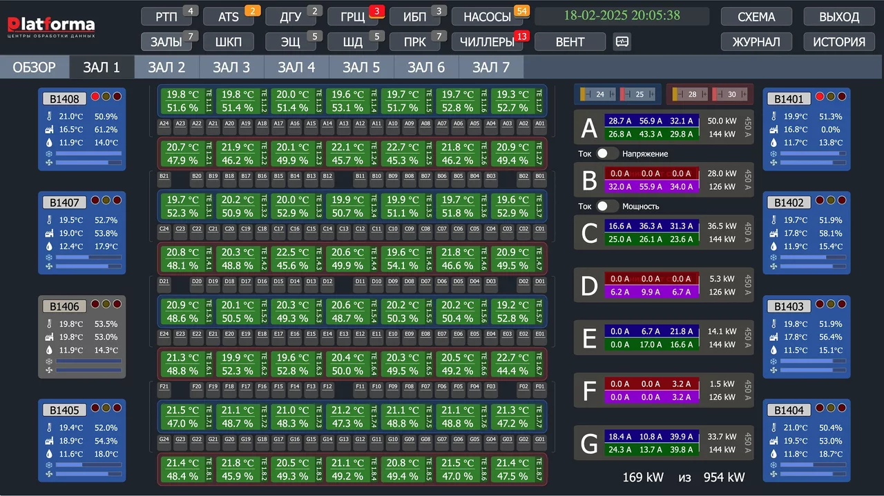 Контроль энергопотребления, температуры и влажности в режиме реального времени.